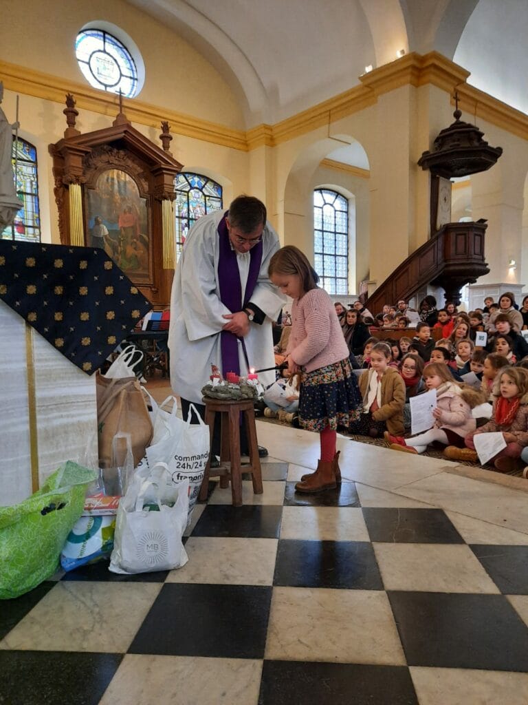 Mardi 5 décembre, tous les élèves se sont réunis à l’église ST VIGOR pour célébrer l’entrée en avent. Lors de la célébration, nous avons remis au responsable des paniers ST VINCENT notre collecte alimentaire généreuse afin d’aider les familles marlychoises dans le besoin.