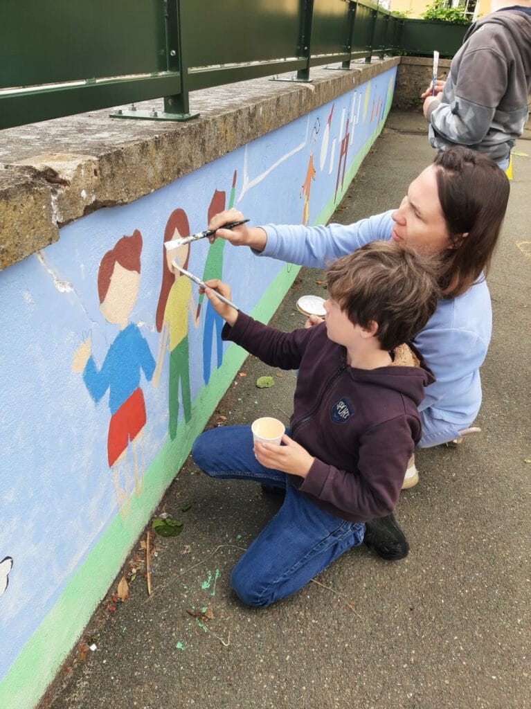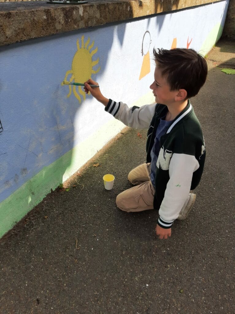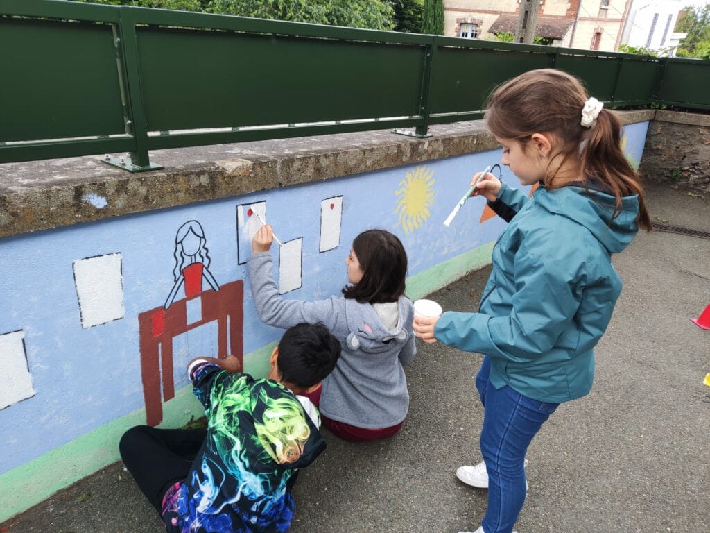 En lien avec le projet d’école sur le « Vivre ensemble », les élèves ont réfléchi toute l’année aux valeurs de l’olympisme et du paralympisme : COURAGE- AMITIE-RESPECT-EXCELLENCE . Tous les élèves de l’école ont ensuite illustré ces valeurs et mis en peinture en réalisant une fresque sur le mur de la cour arrière de l ‘école ! Merci à Mme Muller pour la réalisation de ce projet ! Retour en image :