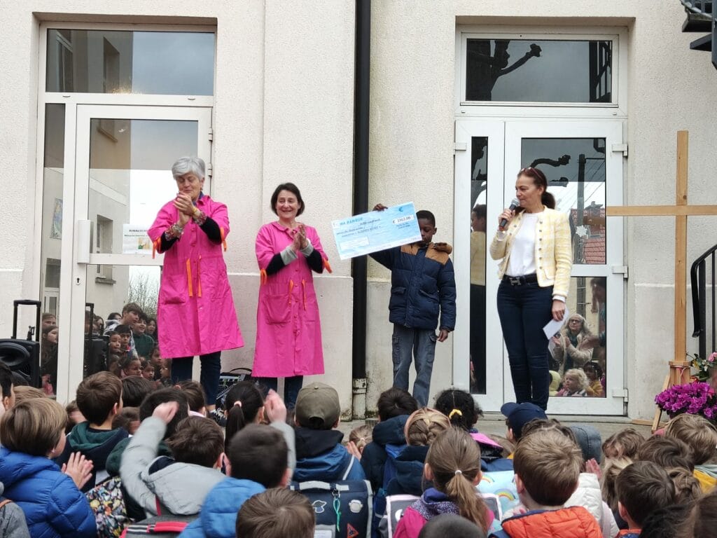A la suite de notre course solidaire, tous les élèves de l’école ont pu remettre un chèque aux « Blouses Roses » vendredi 5 avril. Ce don va permettre d’acheter du matériel et des jeux pour les enfants malades dans les hôpitaux.