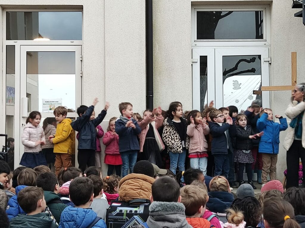 Les « Grande Section » de l’école en ont profité pour présenter devant toute l’école une petite chorégraphie rythmée préparée avec leur maitresse .